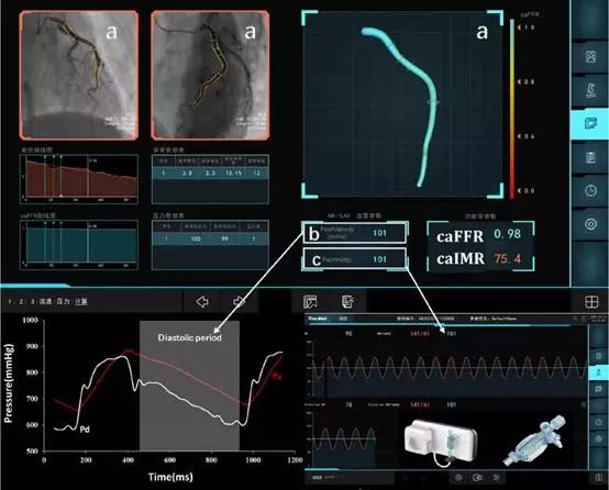 FlashAngio caFFR System(caFFR),是一個(gè)冠狀動(dòng)脈血流儲(chǔ)備分?jǐn)?shù)(FFR)評(píng)估系統(tǒng),基于冠狀動(dòng)脈血管造影的影像計(jì)算冠狀動(dòng)脈造影血流儲(chǔ)備分?jǐn)?shù),在不使用壓力導(dǎo)絲的情況下,實(shí)現(xiàn)對(duì)冠脈血管狹窄病變出FFR值的評(píng)估,基于常規(guī)的造影圖像進(jìn)行血管三維重建,通過專用壓力傳感器實(shí)時(shí)采集主動(dòng)脈壓力,利用優(yōu)化計(jì)算機(jī)流體力學(xué)算法實(shí)時(shí)計(jì)算FFR值,可用于術(shù)前診斷、術(shù)中指導(dǎo)和術(shù)后評(píng)估。