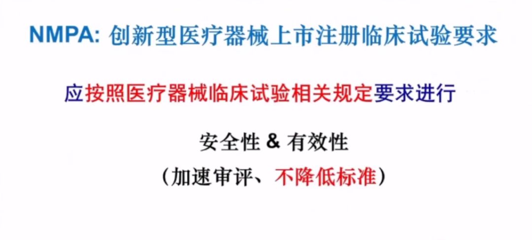 李衛(wèi)教授講到,雖然是創(chuàng)新醫(yī)療器械,國家藥監(jiān)局規(guī)定也要按照醫(yī)療器械臨床試驗(yàn)相關(guān)規(guī)定的要求去執(zhí)行,評價(jià)產(chǎn)品的安全性和有效性,創(chuàng)新政策的推出是為了加速審評過程,但不會降低審批標(biāo)準(zhǔn)。