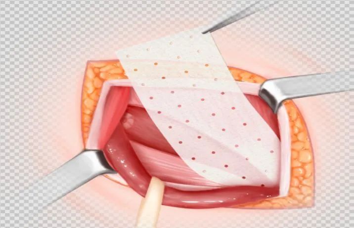 ③與組織有良好親和性與順應(yīng)性,緊密貼合可塑性好,生物相容性好,可降解吸收無異物殘留。