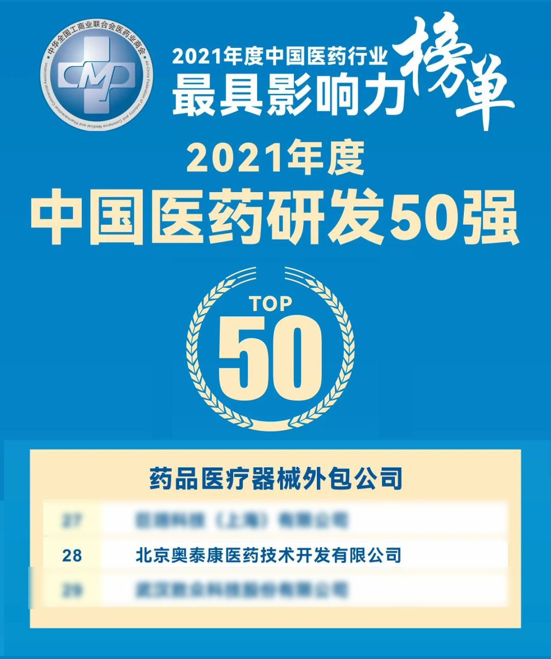 ●入圍全國(guó)工商聯(lián)醫(yī)藥研發(fā)50強(qiáng)