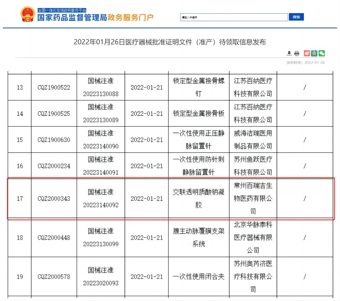 1月26日,常州百瑞吉生物醫(yī)藥有限公司生產(chǎn)的“交聯(lián)透明質(zhì)酸鈉凝膠”獲國(guó)家藥監(jiān)局批準(zhǔn)上市,產(chǎn)品用于預(yù)防盆腹腔術(shù)后粘連,奧泰康助力產(chǎn)品獲得市場(chǎng)準(zhǔn)入。