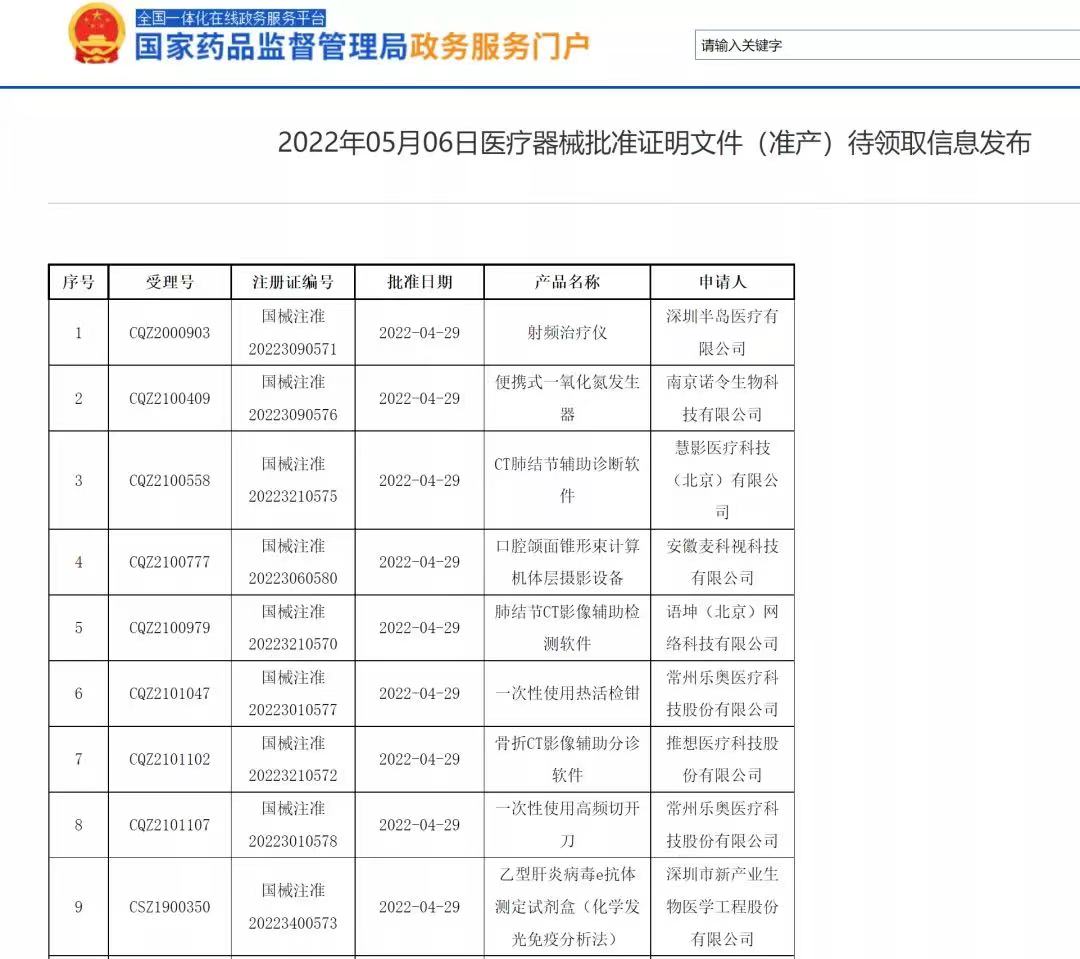 5月6日,奧泰康擔(dān)任臨床試驗(yàn)服務(wù)顧問,助力兩款CT肺結(jié)節(jié)輔助診斷軟件獲國(guó)家藥監(jiān)局批準(zhǔn)上市。截至目前,奧泰康已深度參與50余個(gè)人工智能(AI)臨床注冊(cè)項(xiàng)目,并獲得9張三類醫(yī)療器械注冊(cè)證。