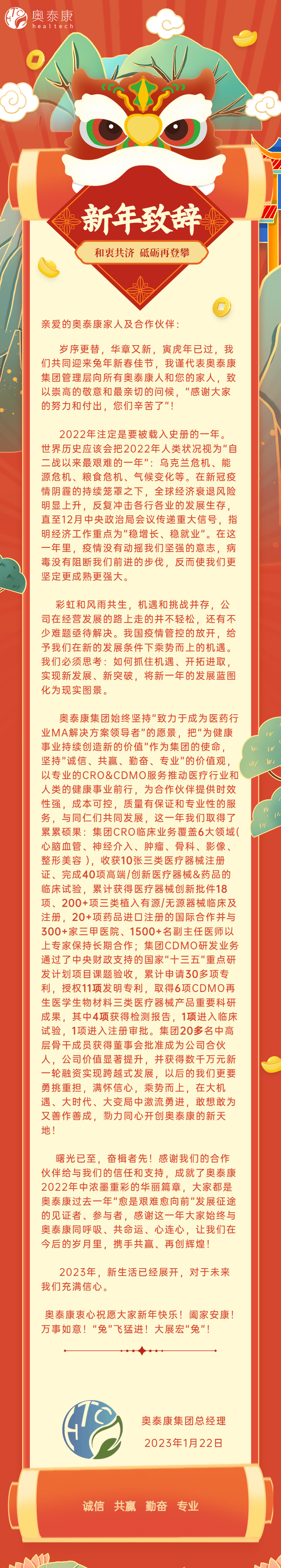 和衷共濟,砥礪再登攀 | 奧泰康2023新年致辭