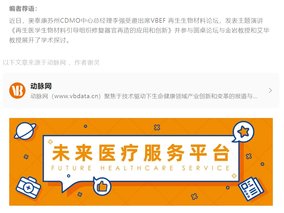 2024年5月7日至10日,第八屆未來醫(yī)療生態(tài)展會以“新青年”為主題,由VB100、動脈網(wǎng)、蛋殼研究院、動脈橙主辦,天津經(jīng)濟技術開發(fā)區(qū)(TEDA)聯(lián)合主辦,與天津濱海中關村科技園管委會、北塘灣數(shù)字經(jīng)濟產(chǎn)業(yè)園戰(zhàn)略合作,于北京·北人亦創(chuàng)國際會展中心正式召開。作為此次論壇備受關注的熱門論壇之一,生物再生材料論壇于5月10日下午圓滿落幕。