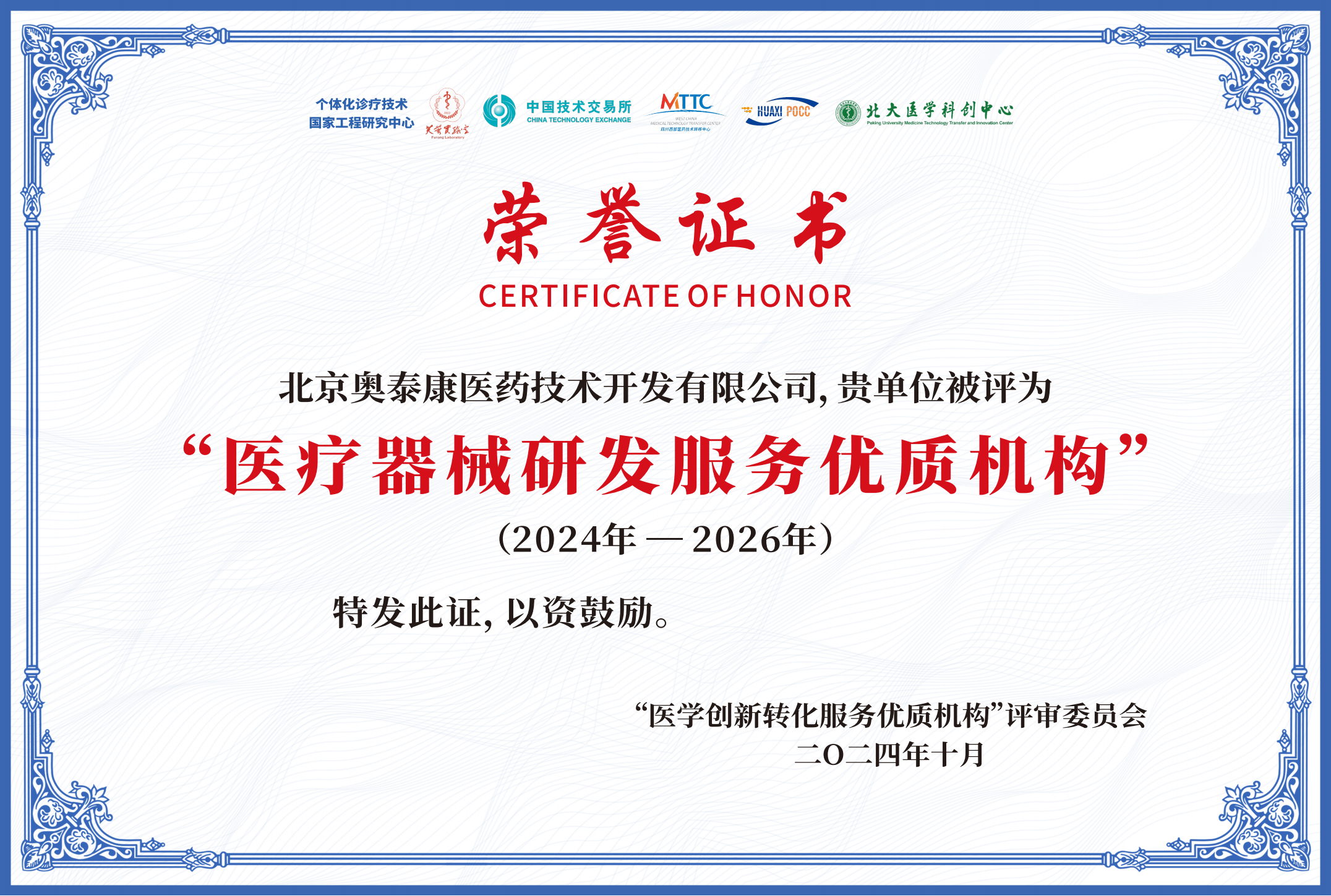 2024年度“醫(yī)療器械研發(fā)服務(wù)優(yōu)質(zhì)機(jī)構(gòu)”